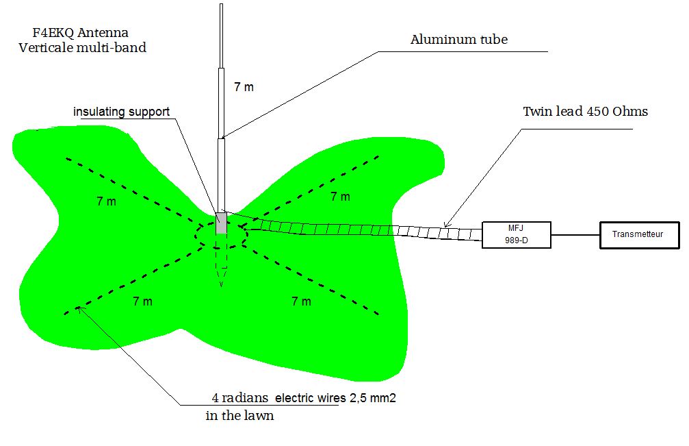 вертикал 9.3м  с противовесами с согласующим шлейфом