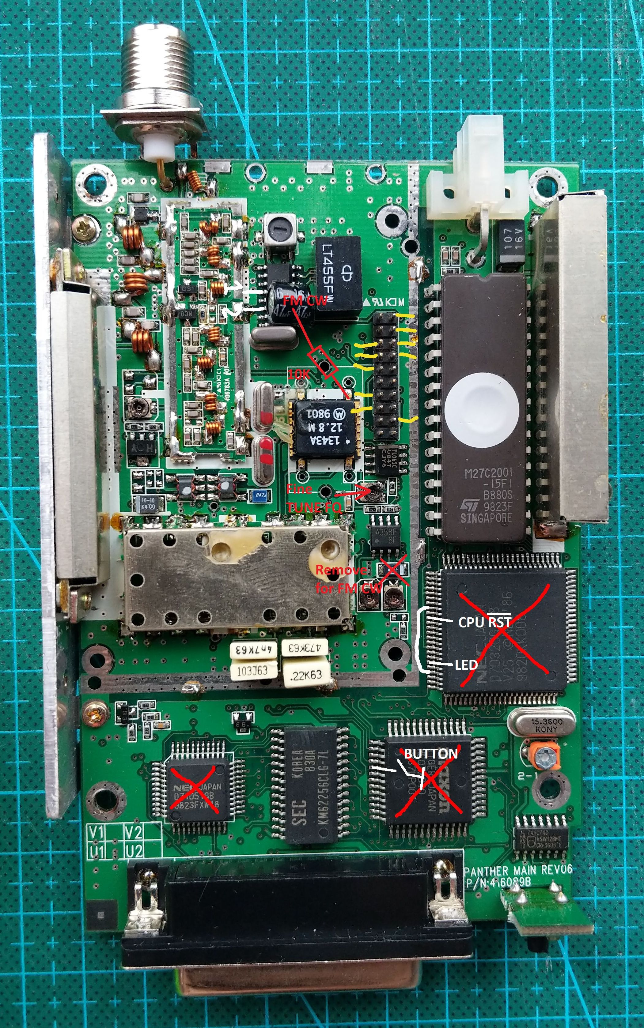 Вот краткое описание контактов 20-выводного тестового разъема, к которому мы подключаемся. Ответная часть разъема имеется. С платы радио пада нужно сдуть несколько лишних микросхем.