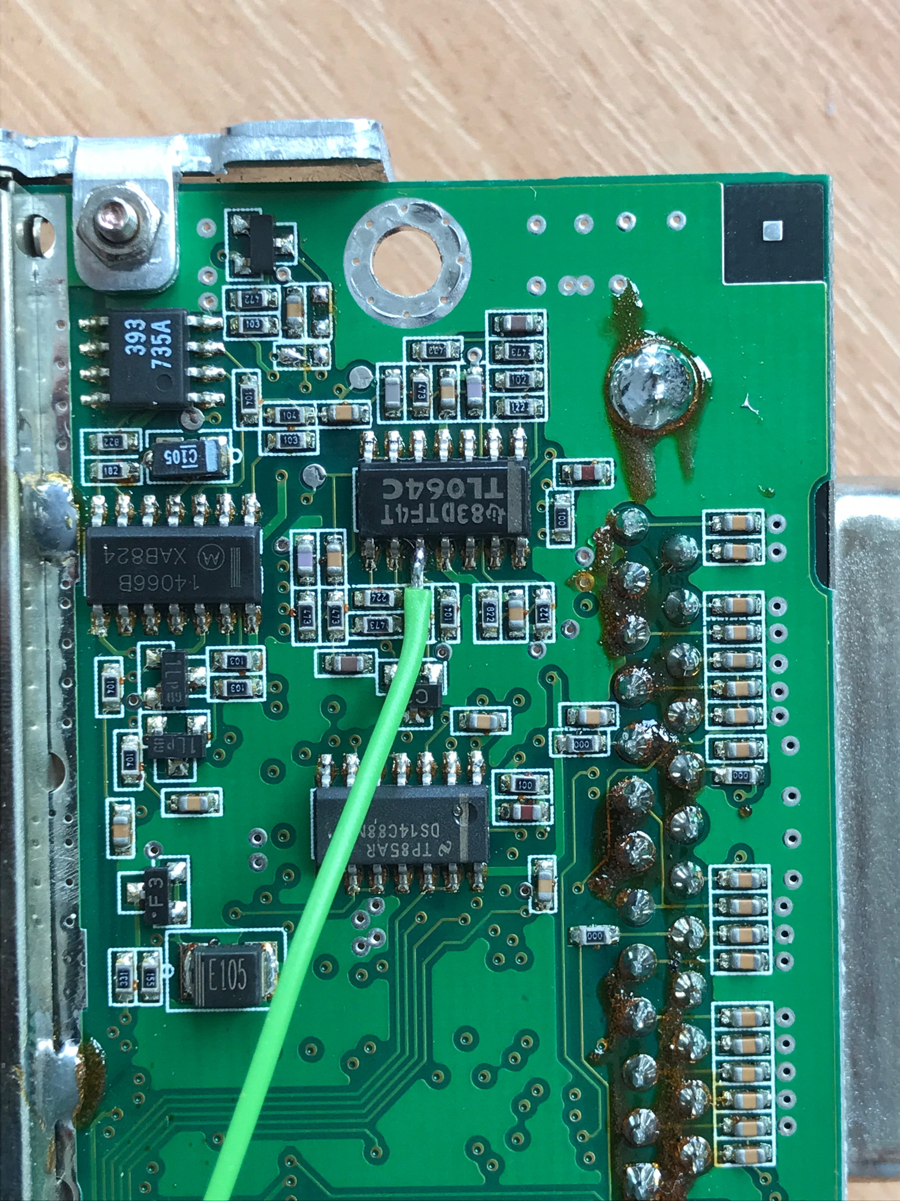 Вот фото верхней и нижней стороны платы. Снятый экран нужно припаять на место.
