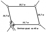 Большинство городских радиолюбителей сталкиваются с проблемой размещения коротковолновой антенны из-за ограниченного пространства. Но если имеется место для подвеса проволочной антенны, то автор прелагает воспользоваться им и сделать "GERMAN Quad Antenna". Он сообщает, что она хорошо работает на 6-ти любительских диапазонах 80, 40, 20, 15, 10 и даже 2 метрах. Схема антенны приведена на рисунке